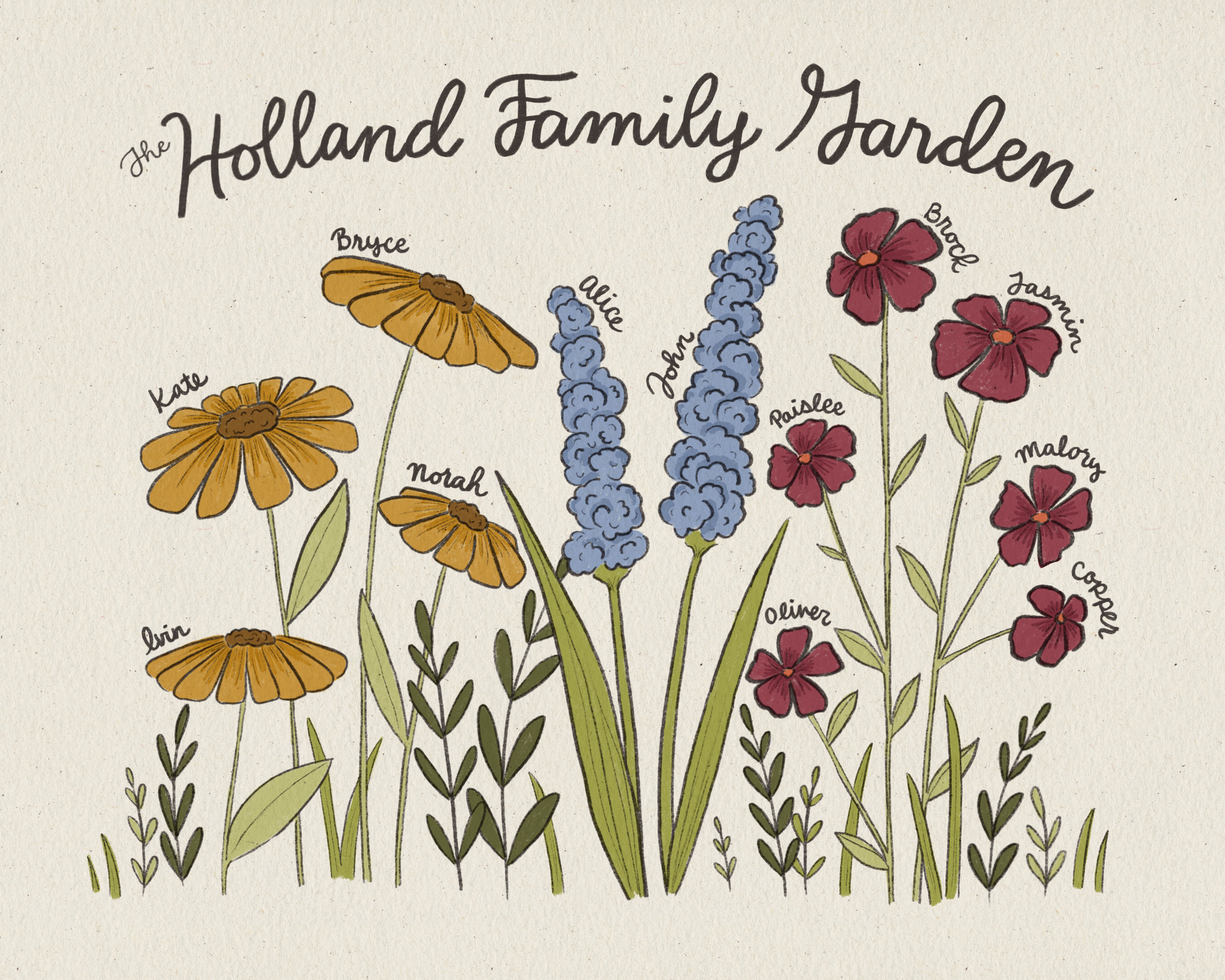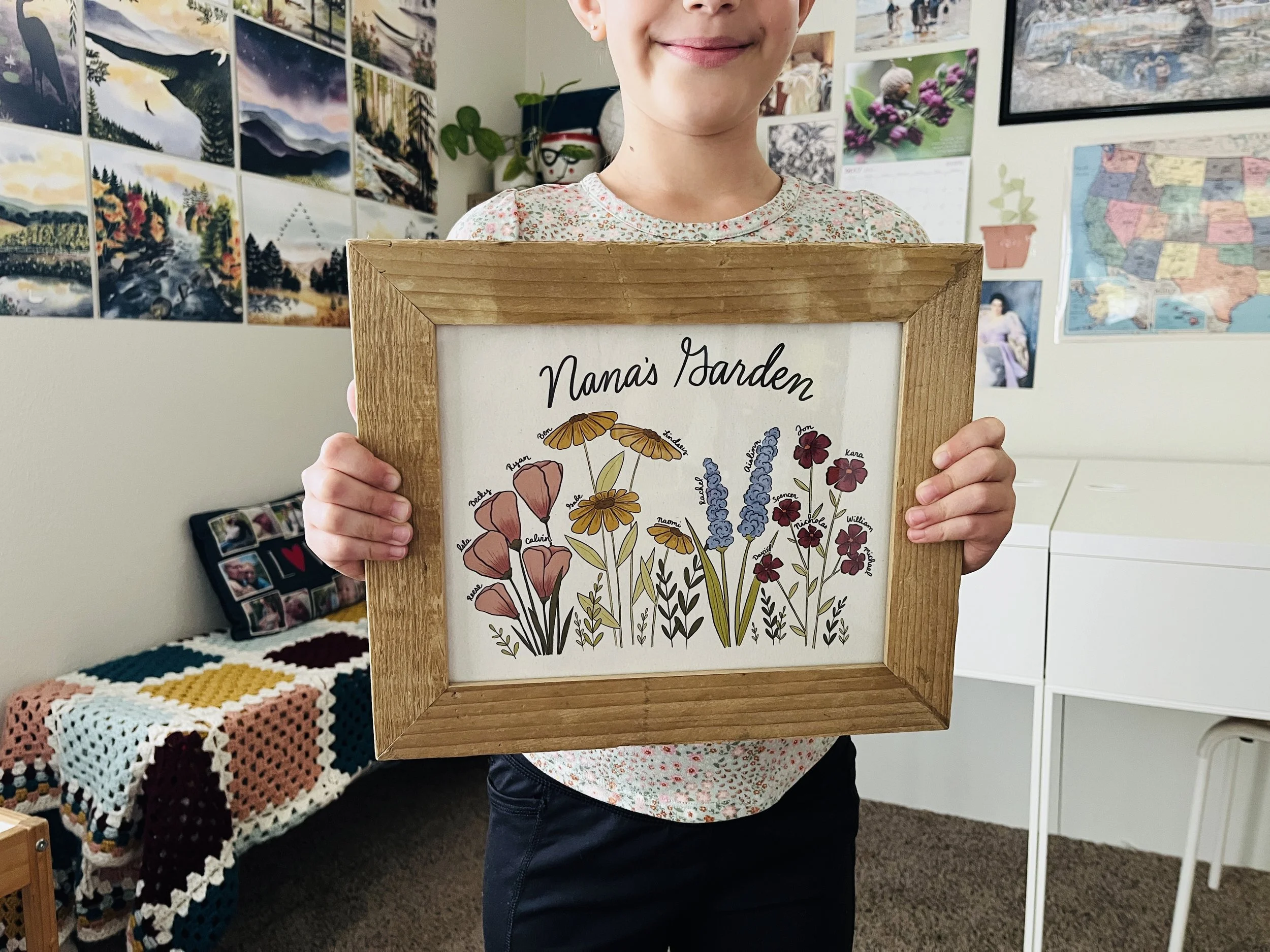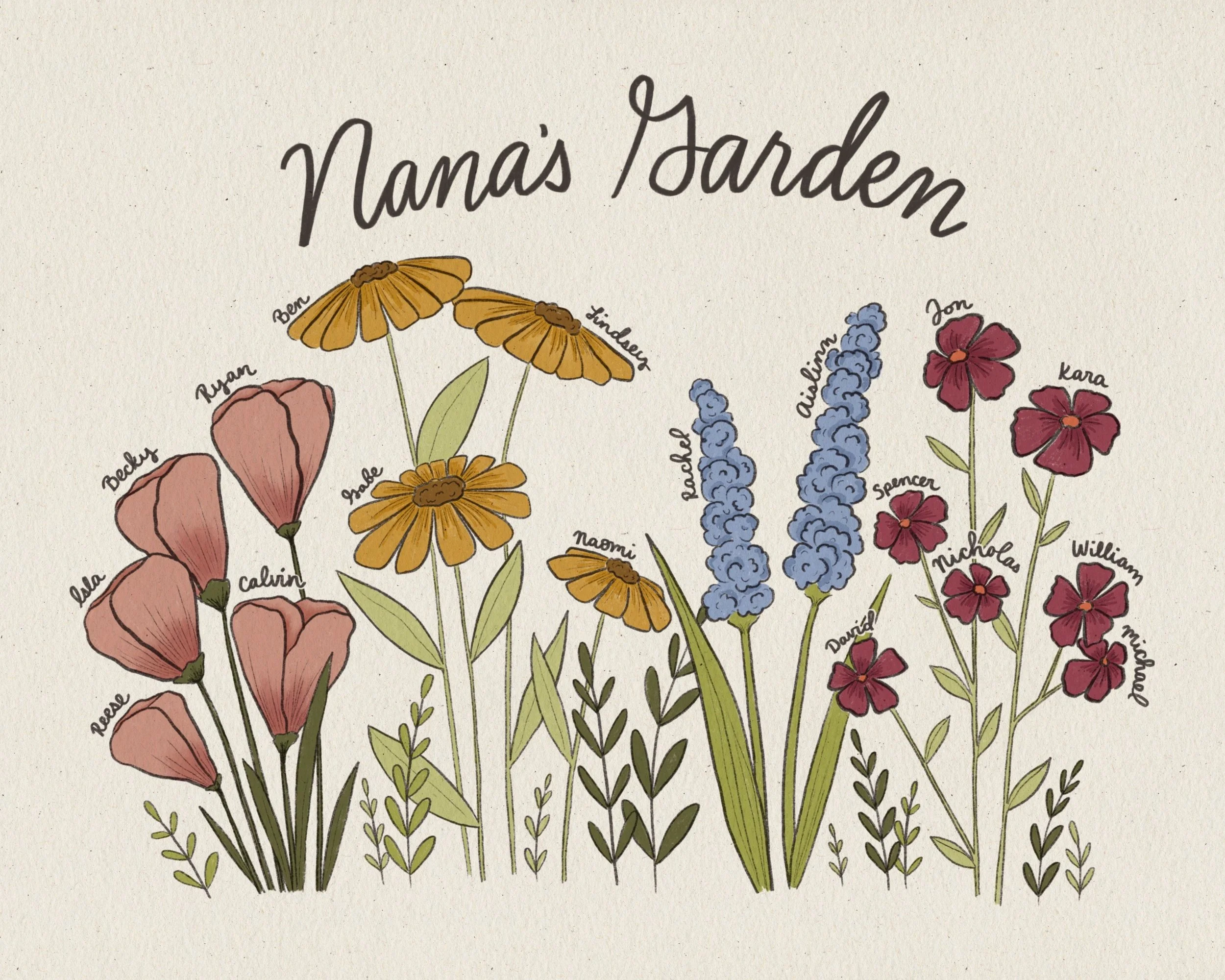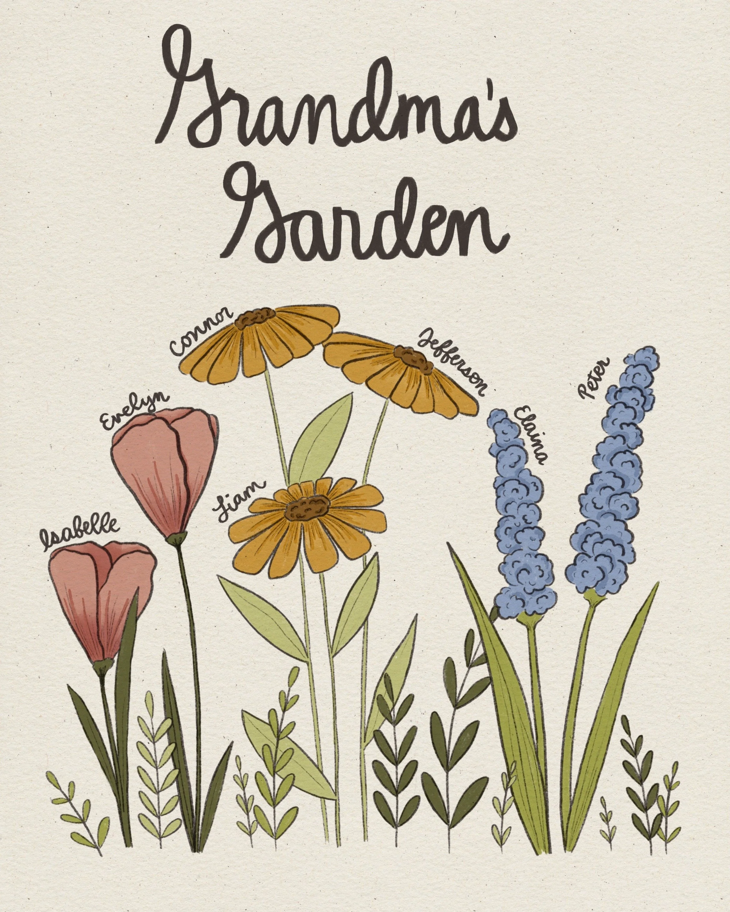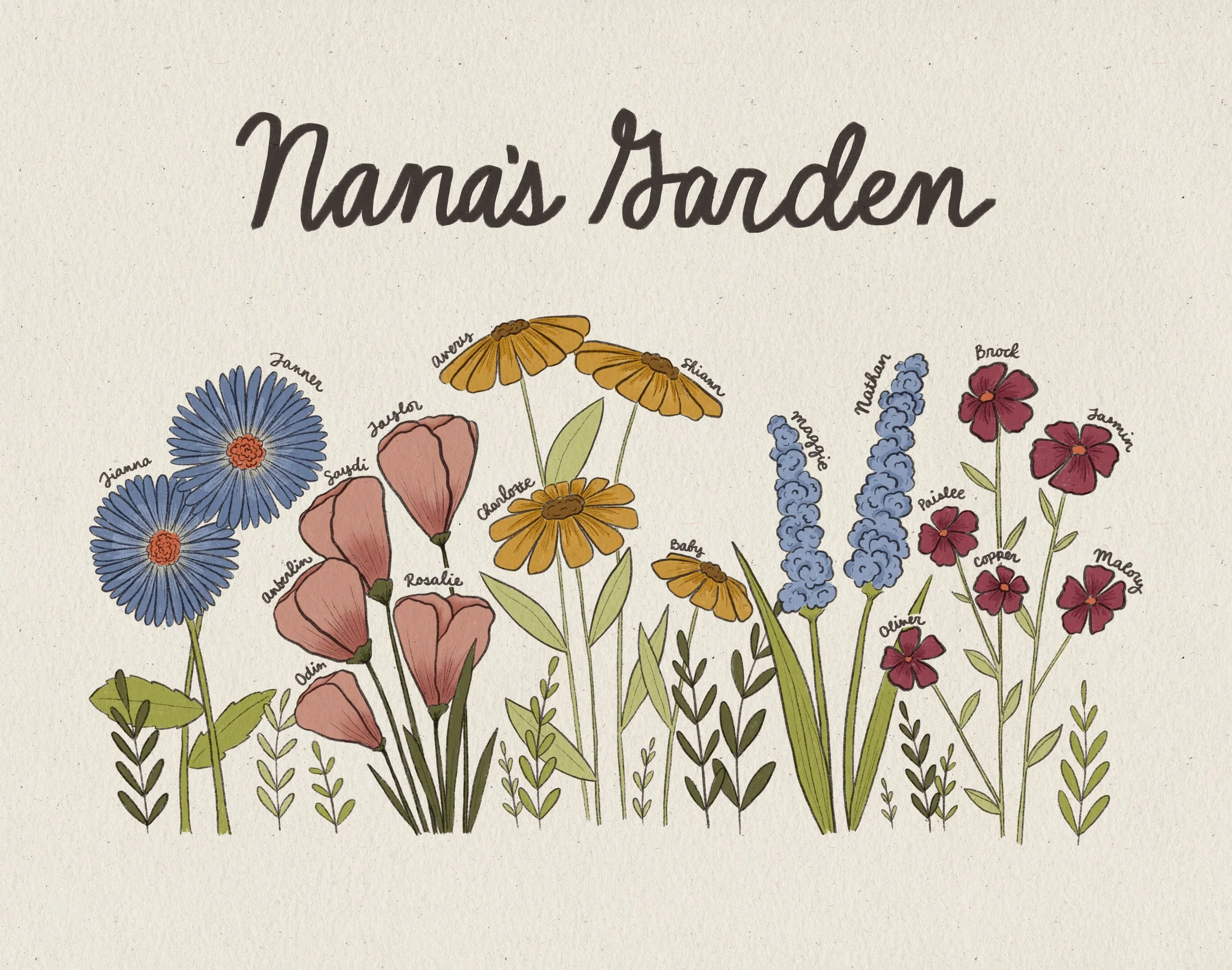 A little while back, a dear friend reached out to me with a request. She wanted something special for her mother-in-law for Mother’s Day—something meaningful and personal, not just another candle or scarf. She asked if I could draw a garden of flowers, each one labeled with the name of a grandchild.